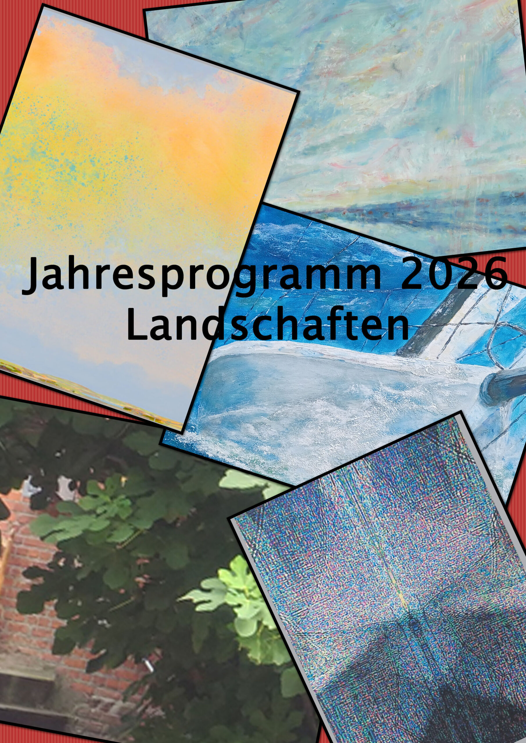 Das Spektrum der verschiedenen Landschaften ist beinahe unendlich. Dschungel, Wüsten, Gebirge, Meere, gezähmte Kulturlandschaften. So unterschiedlich Landschaften sein können, so heterogen und ungleich sind auch die Blicke des Menschen auf sie. Heimat oder nicht mehr Heimat. Umkämpfte Gebiete. Geplagtes, leidendes Gelände. Erholung, Ernährung, Wohnung. Unsere Erde, Lebensquell. Nahrung auch von Kleinstlebewesen, von Bestäubern. Terrain für Forschung. Landschaft ist beinahe ständig in Gefahr. Ulla Nentwig, Katharina Sickert, Wolfgang Jeske, Jane Wyrwa, Ziad El Kilani, Benedikt Flückiger, Peter Groß, Angelika Wolf
